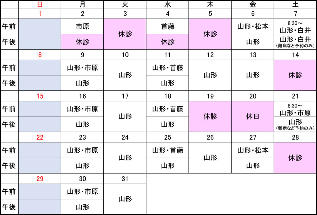 ※担当医師は急に変更となる場合もありますので、事前にご確認下さい。